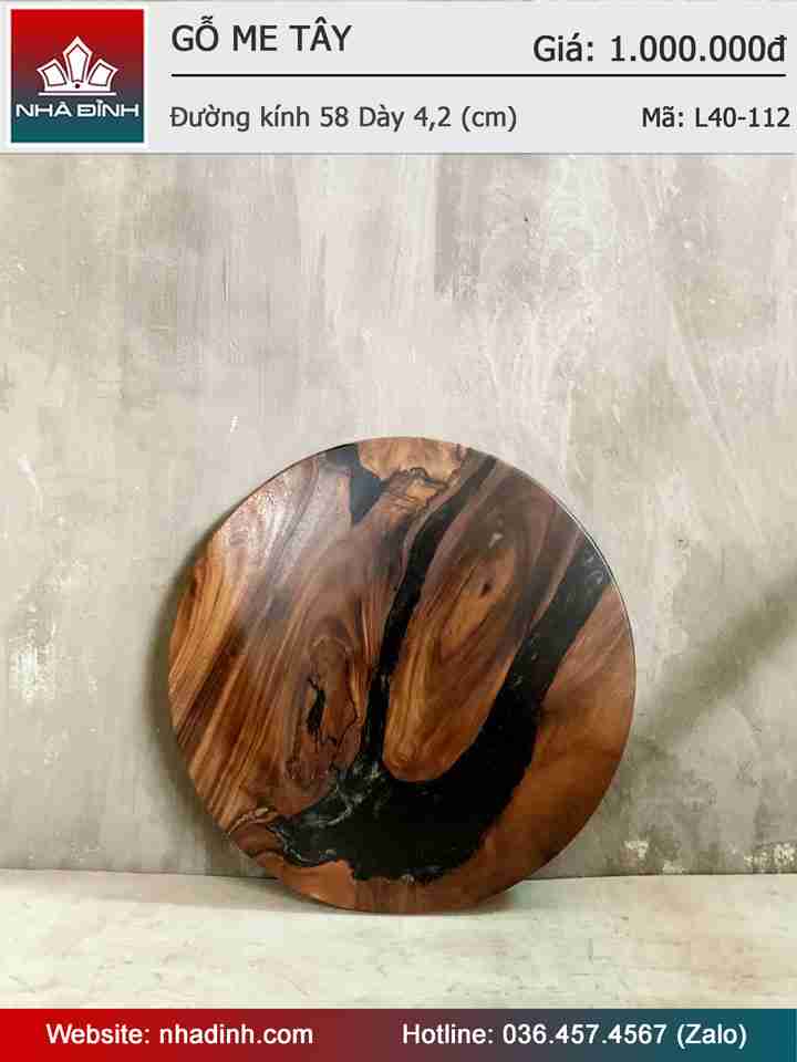 Mặt Bàn Tròn Gỗ Me Tây Nguyên Khối Đường Kính 58 Dày 4,2 (cm)
