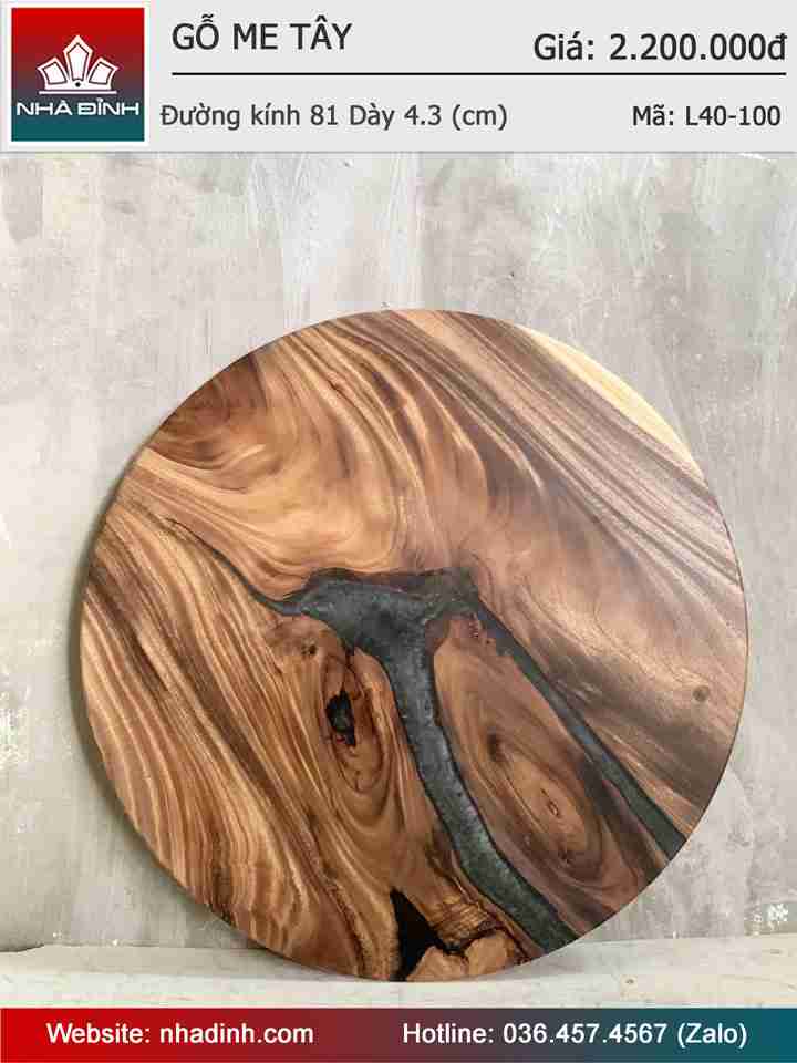 Mặt Bàn Tròn Gỗ Me Tây Nguyên Khối Đường Kính 81 Dày 4,3 (cm)