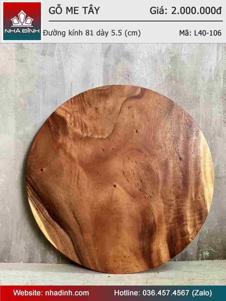 Mặt Bàn Tròn Gỗ Me Tây Nguyên Khối Đường Kính 81 Dày 5,5 (cm)