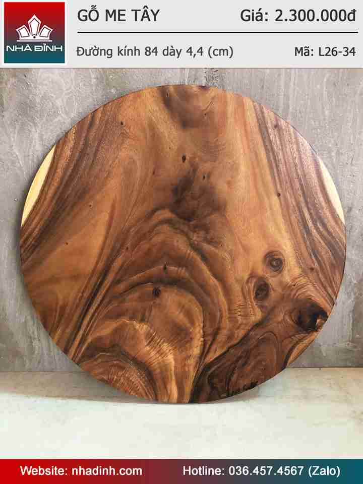 Mặt Bàn Tròn Gỗ Me Tây Nguyên Khối Đường Kính 84 Dày 4,4 (cm)