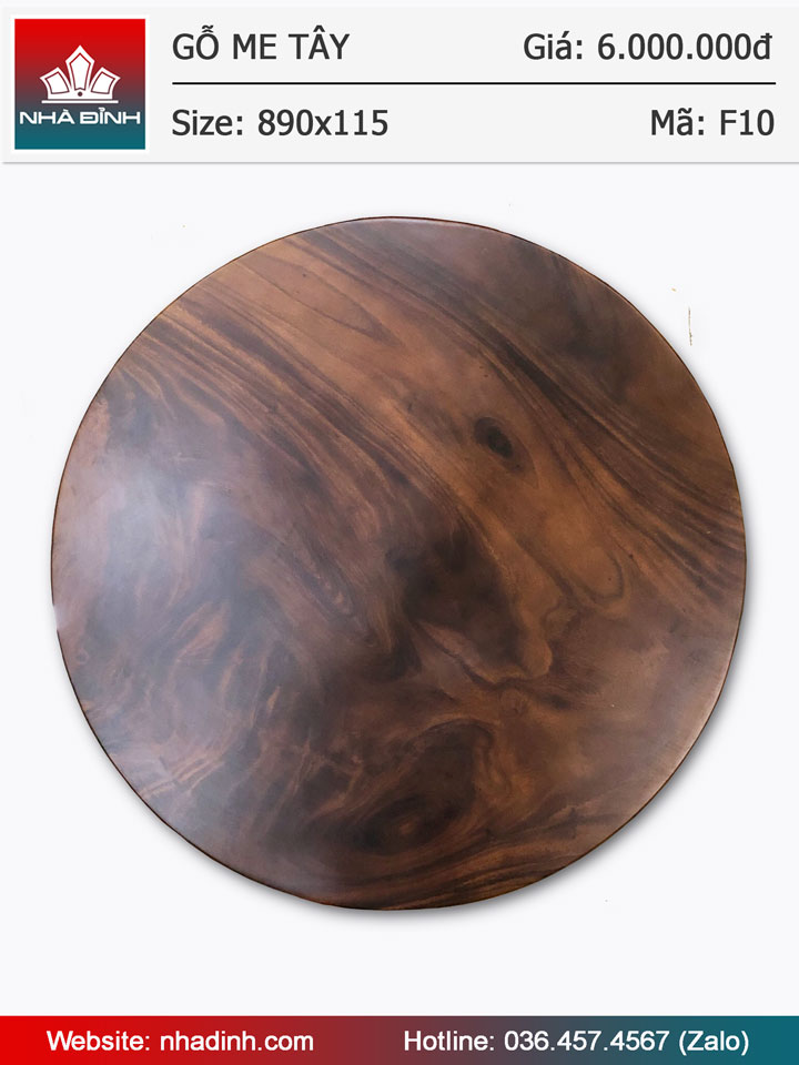 Mặt bàn tròn gỗ Me Tây nguyên khối đường kính 89 dày 11.5 (cm)