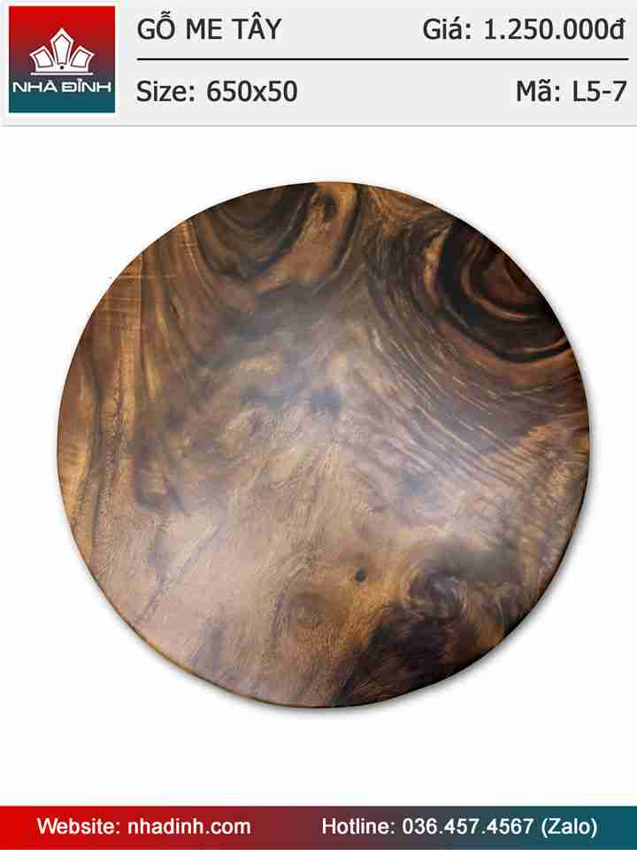 Mặt bàn tròn gỗ Me Tây nguyên tấm đường kính 65 dày 5cm