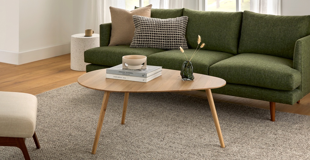 Bàn Trà Gỗ Sồi Hình Quả Trứng