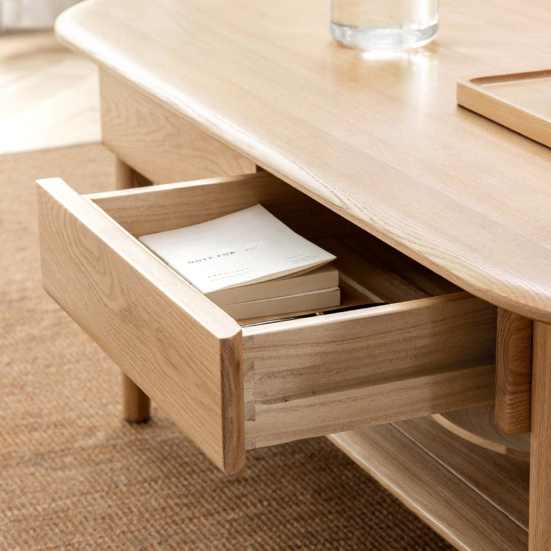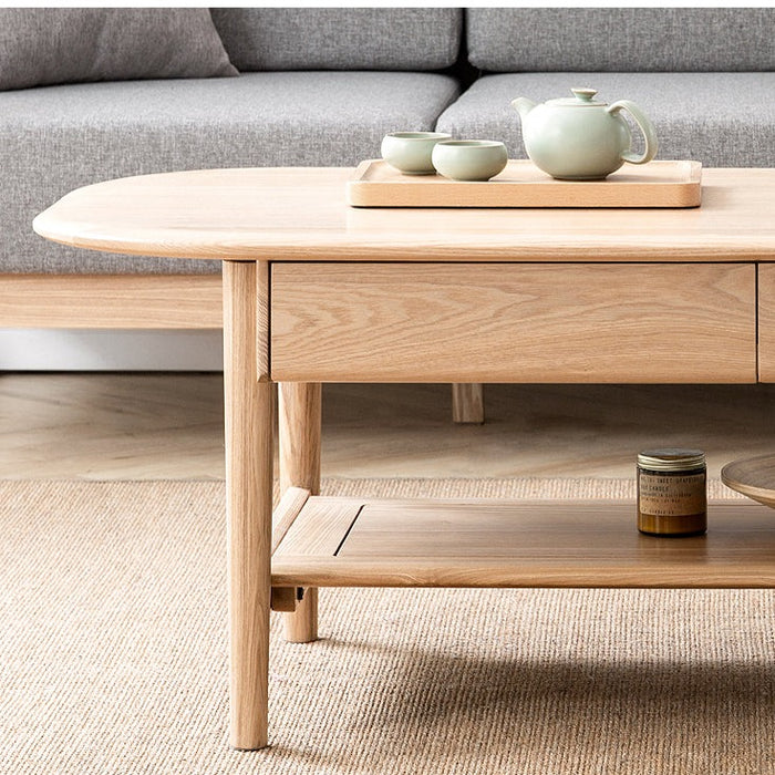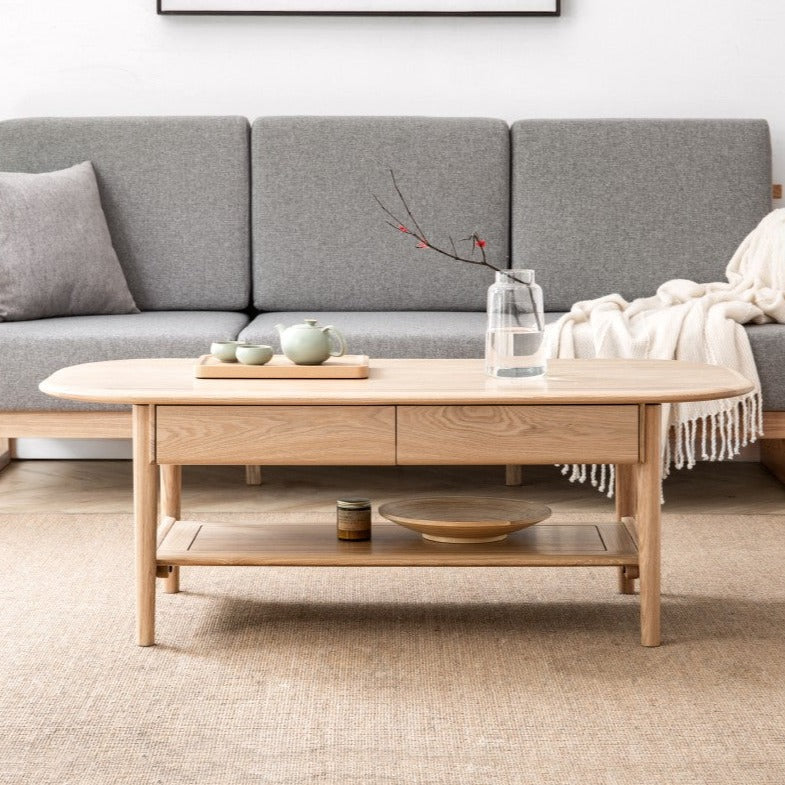 Bàn Coffee Oval Gỗ Sồi Dài 100 Rộng 50 Cao 42 (сm)