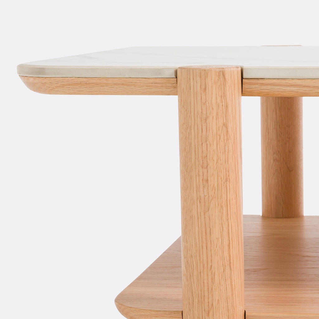 Chất liệu: Gỗ Sồi (Oak)_75% + Gỗ Cao Su Veneer Sồi_25% + Mặt Bàn Đá Nhân Tạo
