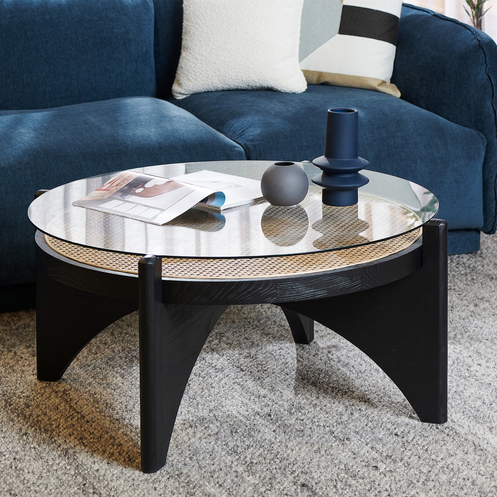 Chất liệu: Mây Nhựa Mắt Cáo + Kính Trong Cường Lực + Gỗ Sồi (Oak)