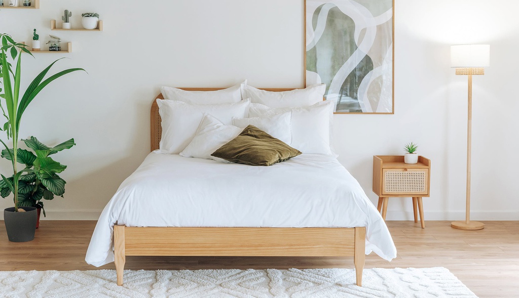 Giường Tựa Lưng Mây Gỗ Sồi (Oak) Ngang 160