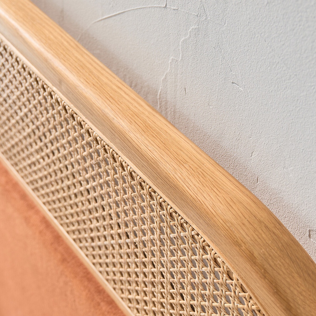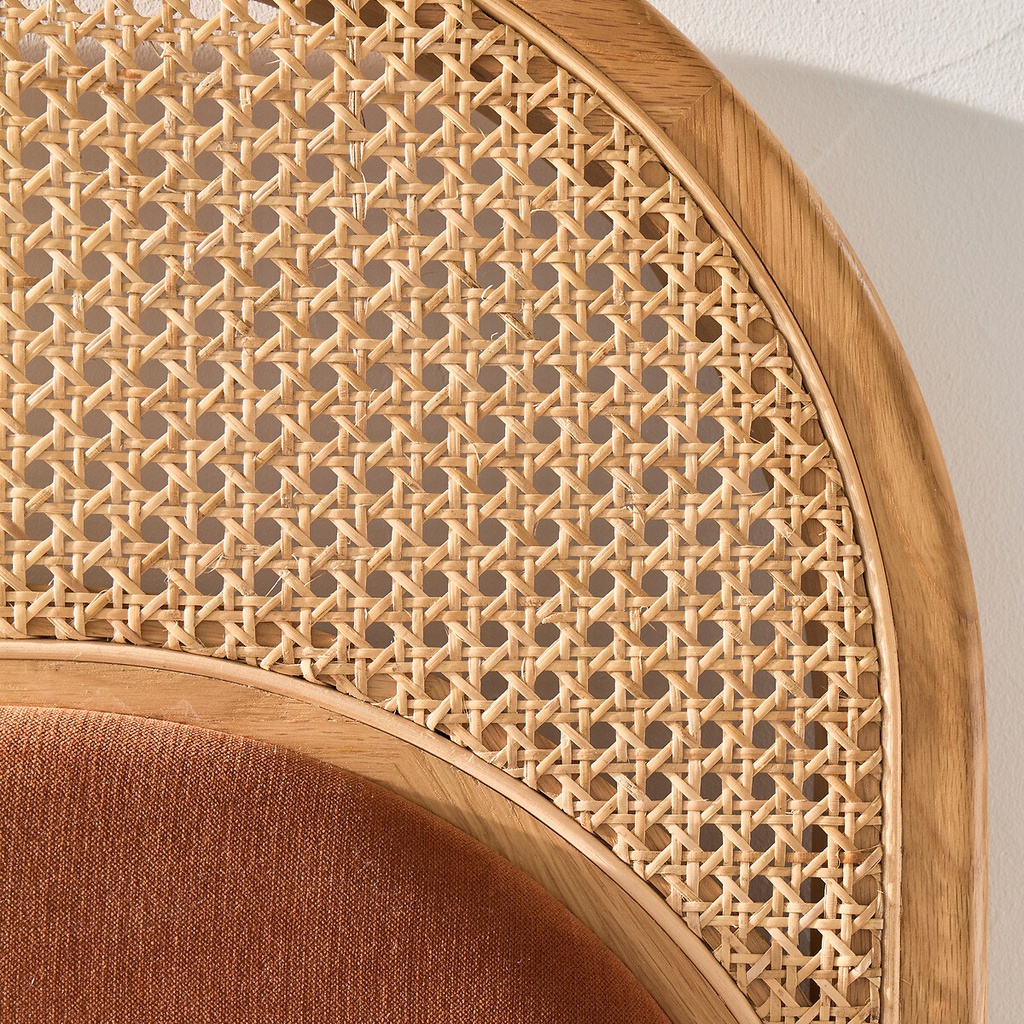 Chất liệu: Gỗ Sồi (Oak) + Mây + Nệm Bọc Simili