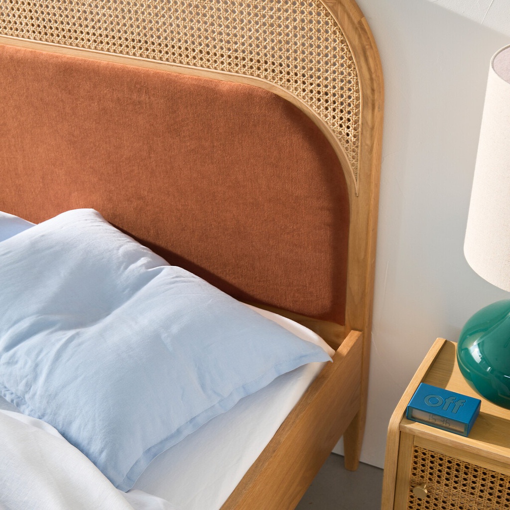Giường Gỗ Sồi Kết Hợp Mây Và Nệm