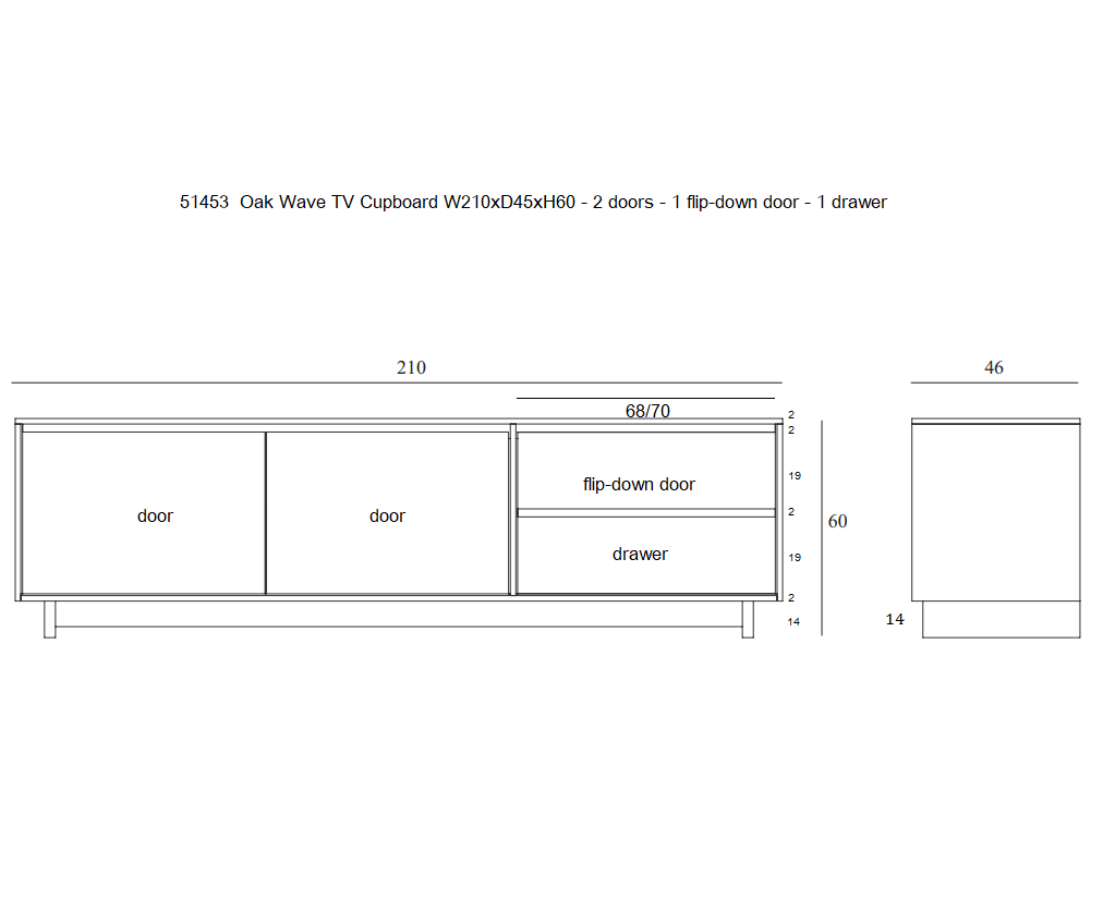 Tủ Tivi Gỗ Sồi Dài 210 Cao 60 Sâu 46 (cm)