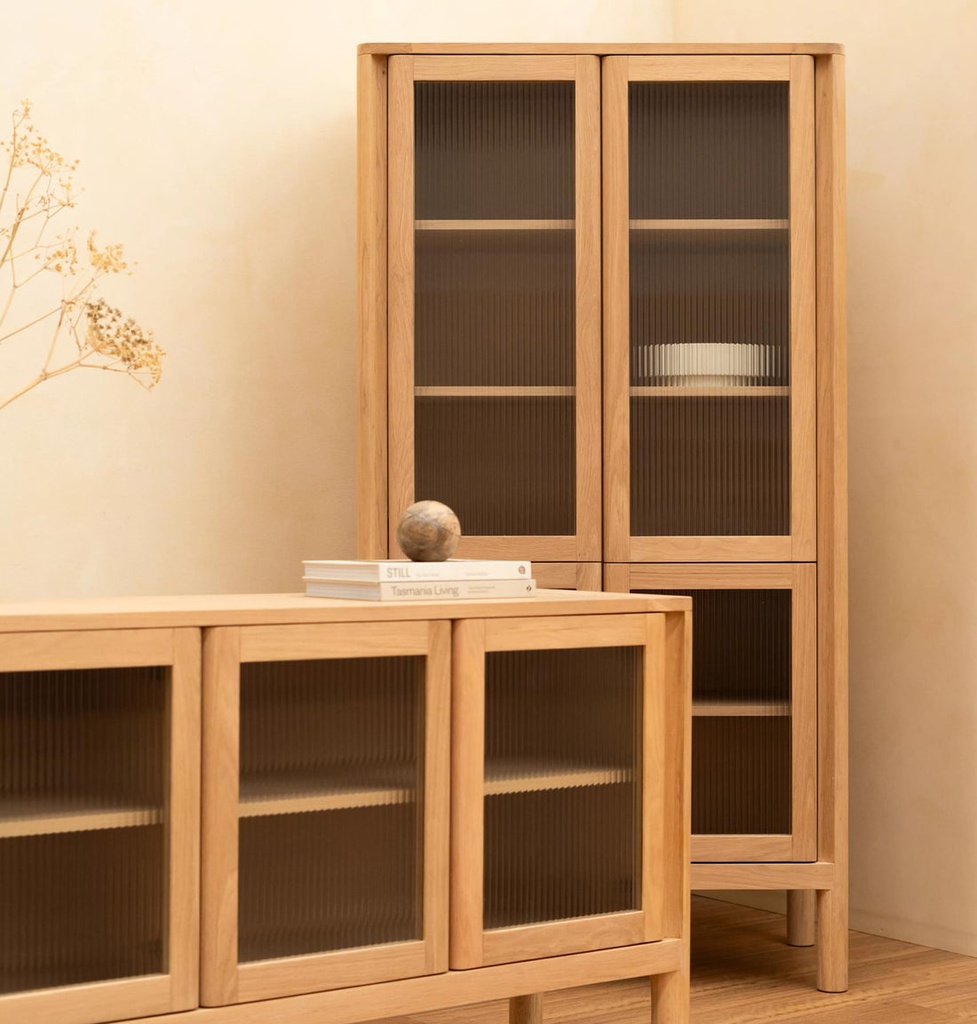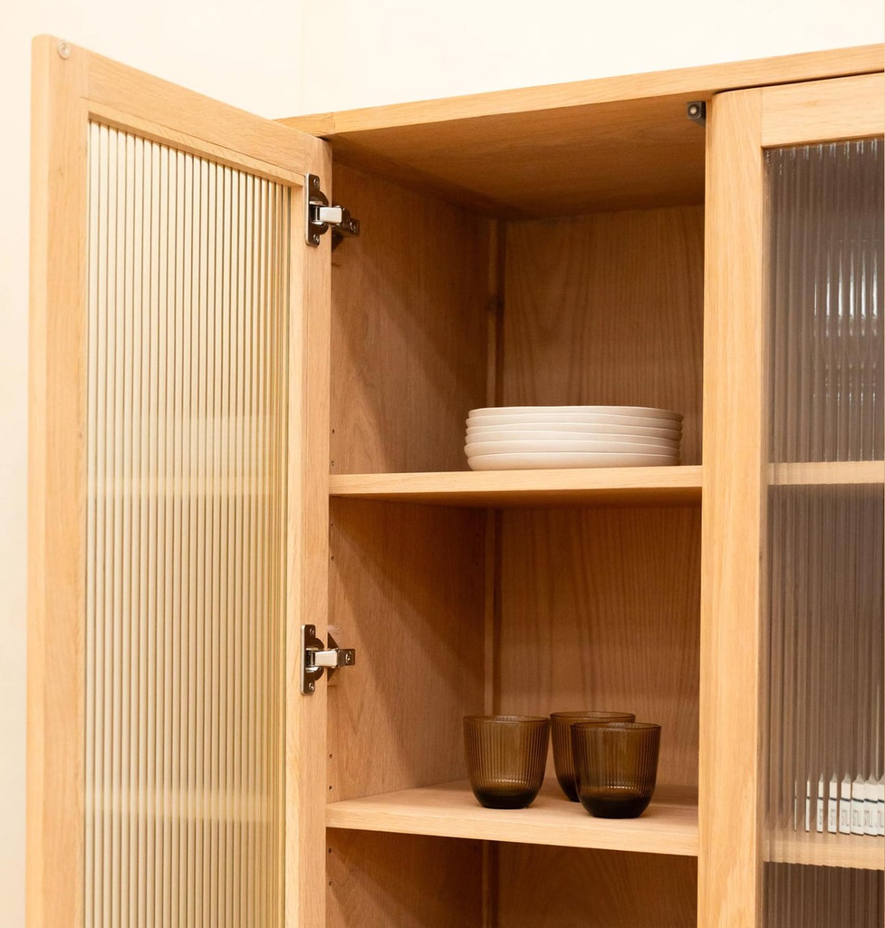 Chất liệu: Kính 5li Sọc Mài + Gỗ Sồi (Oak)_14% + Gỗ Cao Su Veneer Sồi_86%