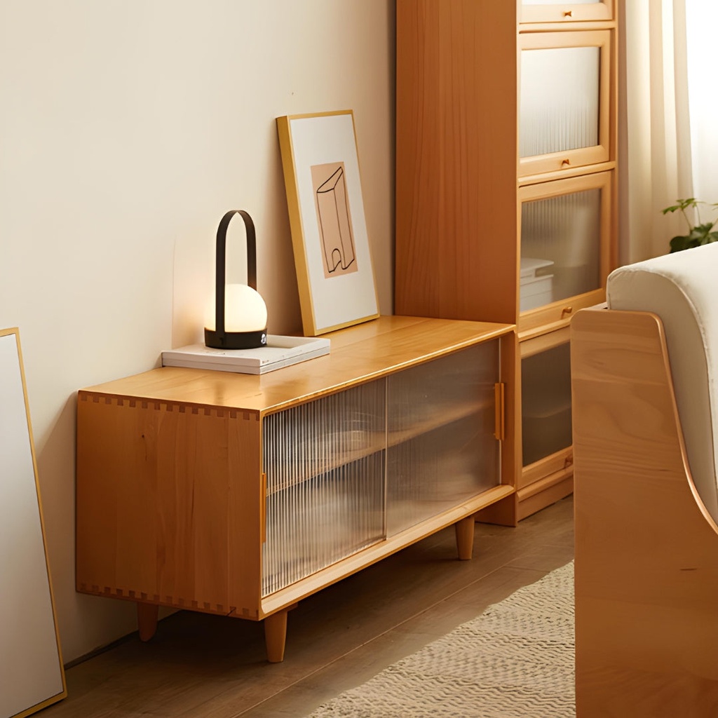 Chất liệu: Kính Sọc Mài + Gỗ Sồi (Oak)_64% + Gỗ Cao Su Veneer Sồi_36%