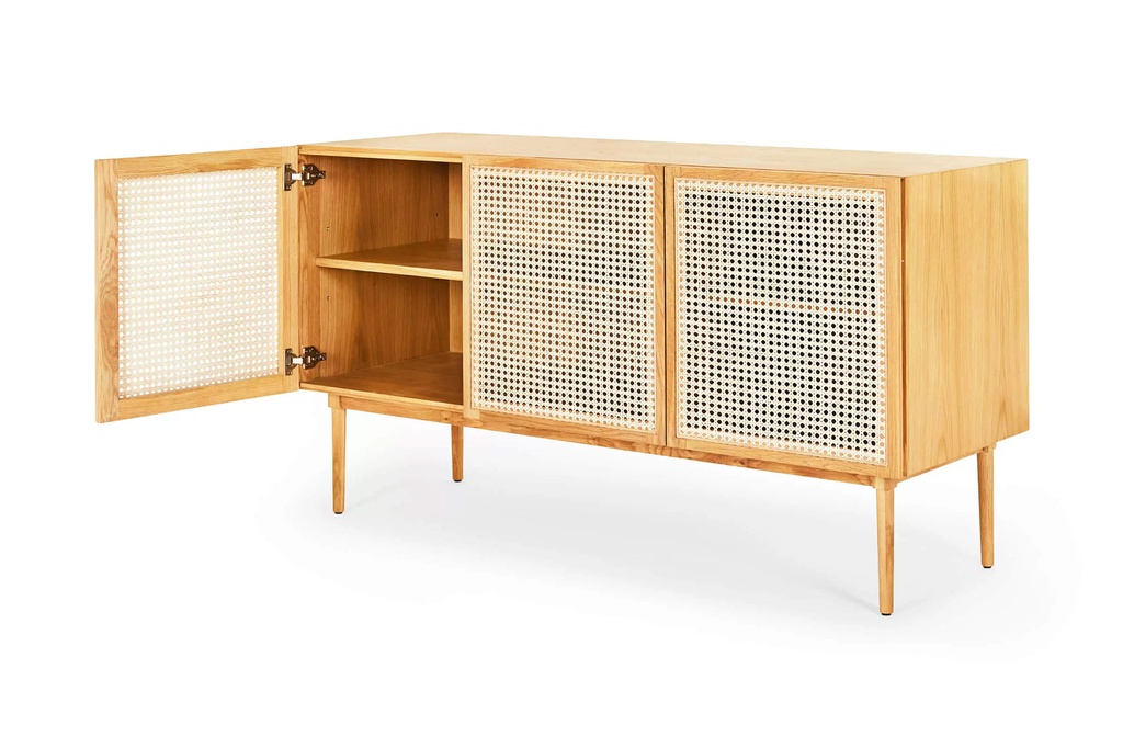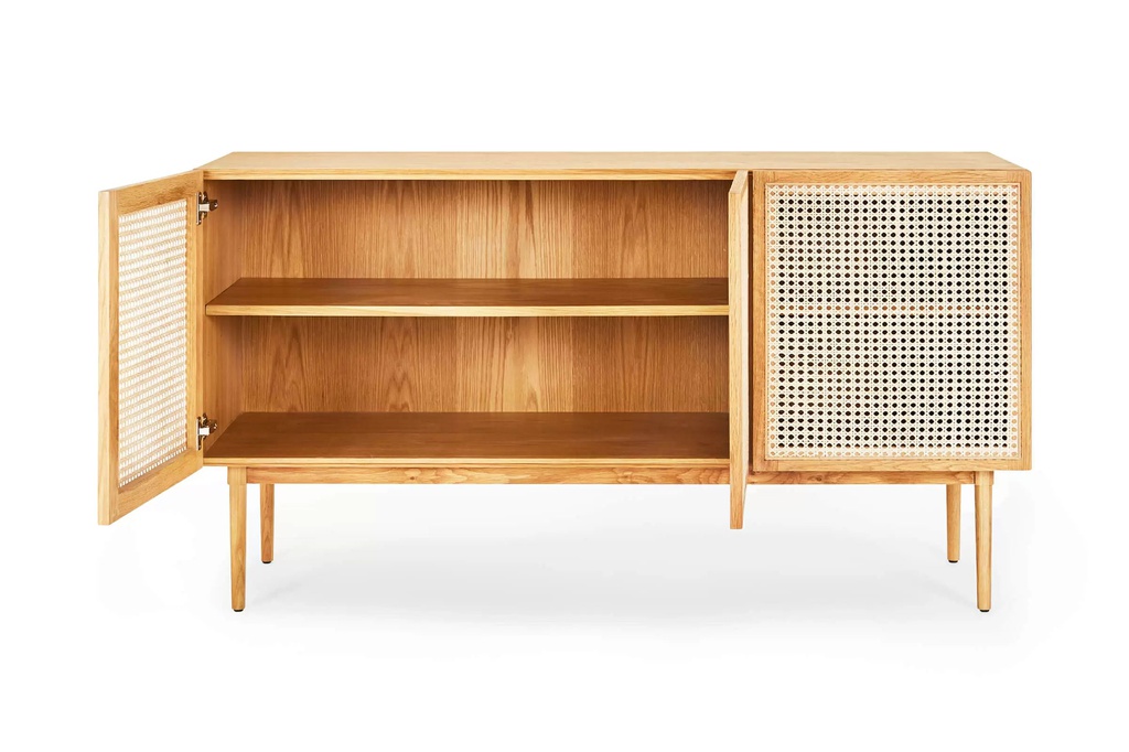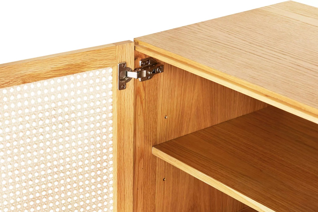 Chất liệu: Gỗ Sồi (Oak)_12% + Gỗ Cao Su Veneer Sồi_88% + Mây Nhựa Mắt Cáo