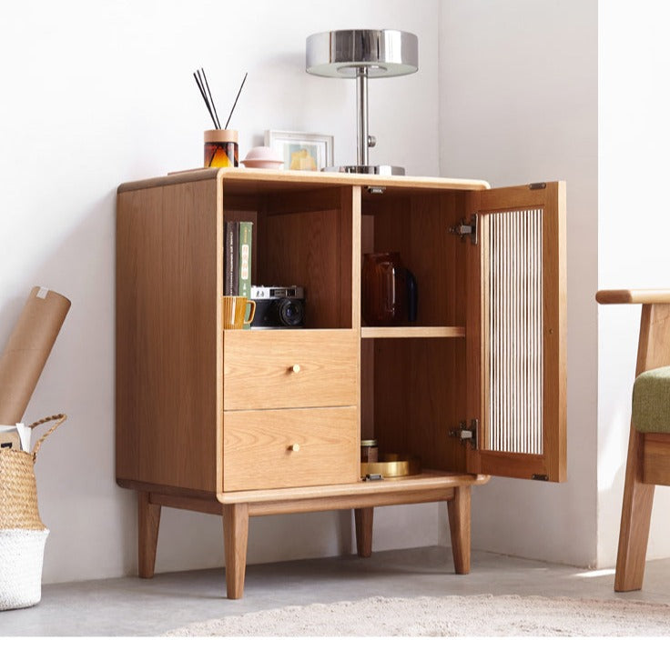 Tủ Trang Trí Gỗ Sồi Kết Hợp Kính