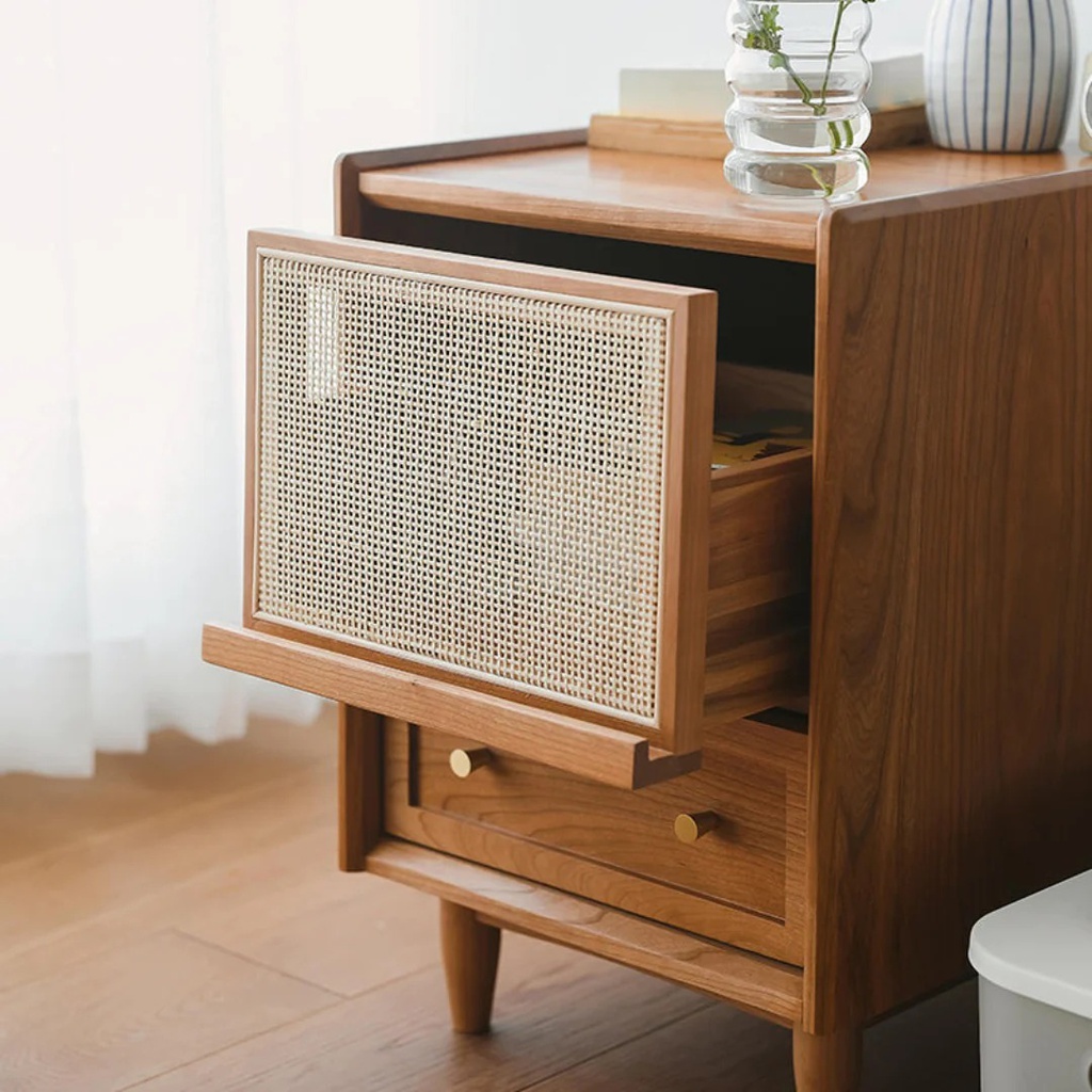 Chất liệu: Gỗ Sồi (Oak) + Mây + Venner Sồi