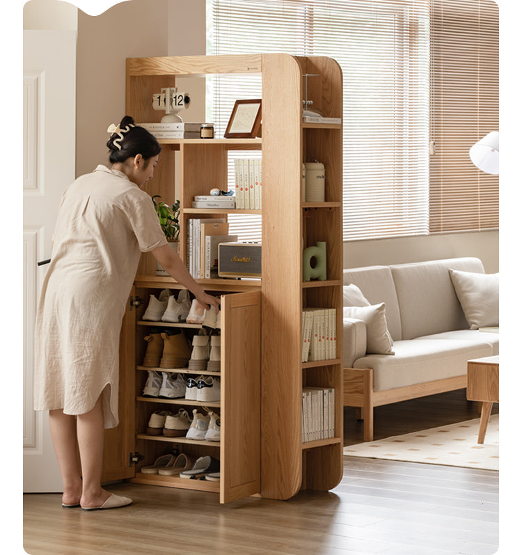 Tủ Giày Kết Hợp Kệ Sách Gỗ Sồi