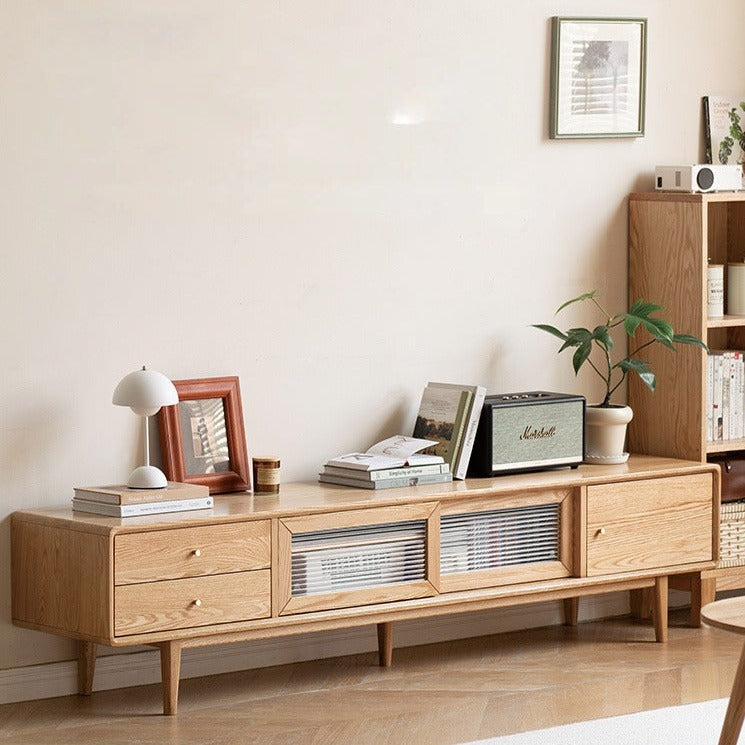 Tủ Tivi Gỗ Sồi Kết Hợp Kính Dài 180 Sâu 40 Cao 46 (сm)