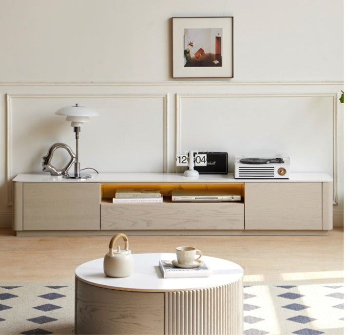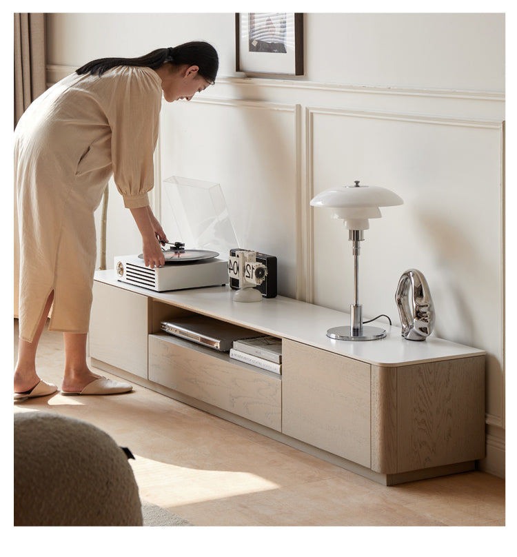 Tủ Tivi Gỗ Sồi Sơn Xám Kết Hợp Mặt Đá Dài 220.4 Rộng 39.6 Cao 35 (cm)