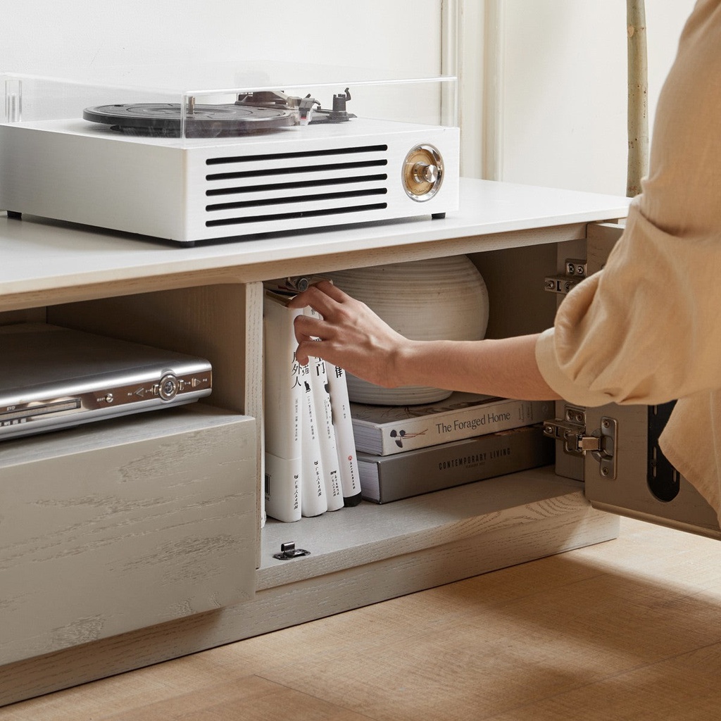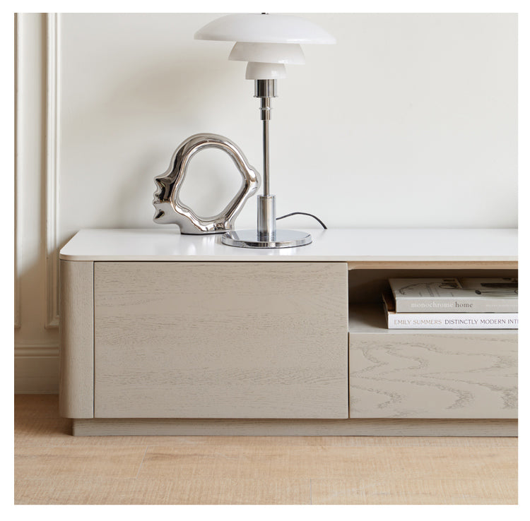 Tủ Tivi Gỗ Sồi Sơn Xám Kết Hợp Mặt Đá