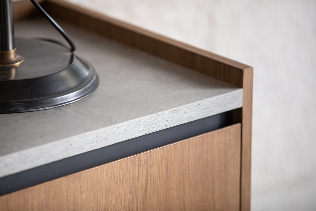 Tủ Trang Trí Gỗ Sồi Kết Hợp Mặt Bàn Đá
